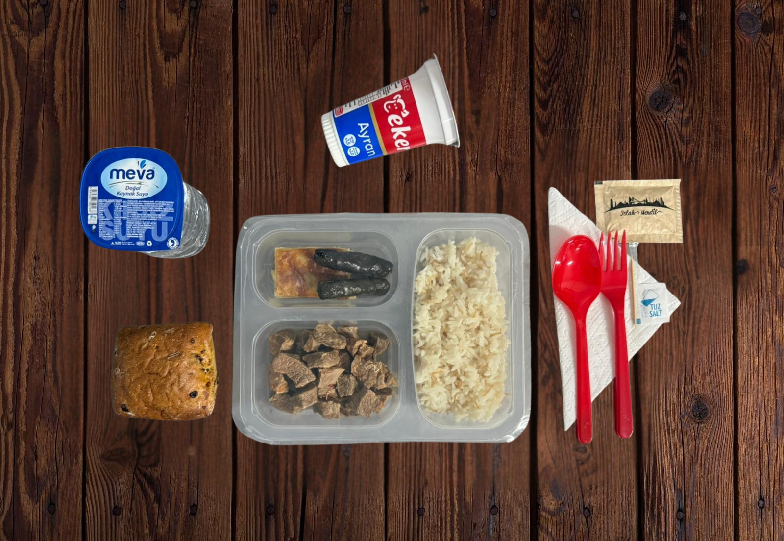 - Servis (Çatal, Kaşık, Bıçak, Islak Mendil, Peçete, Tuz, Kürdan)