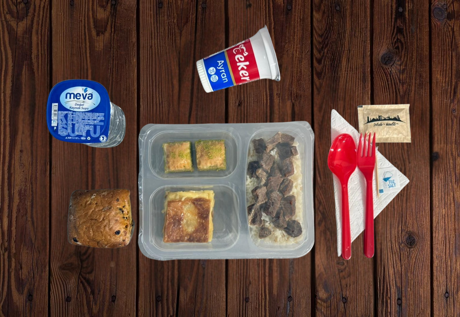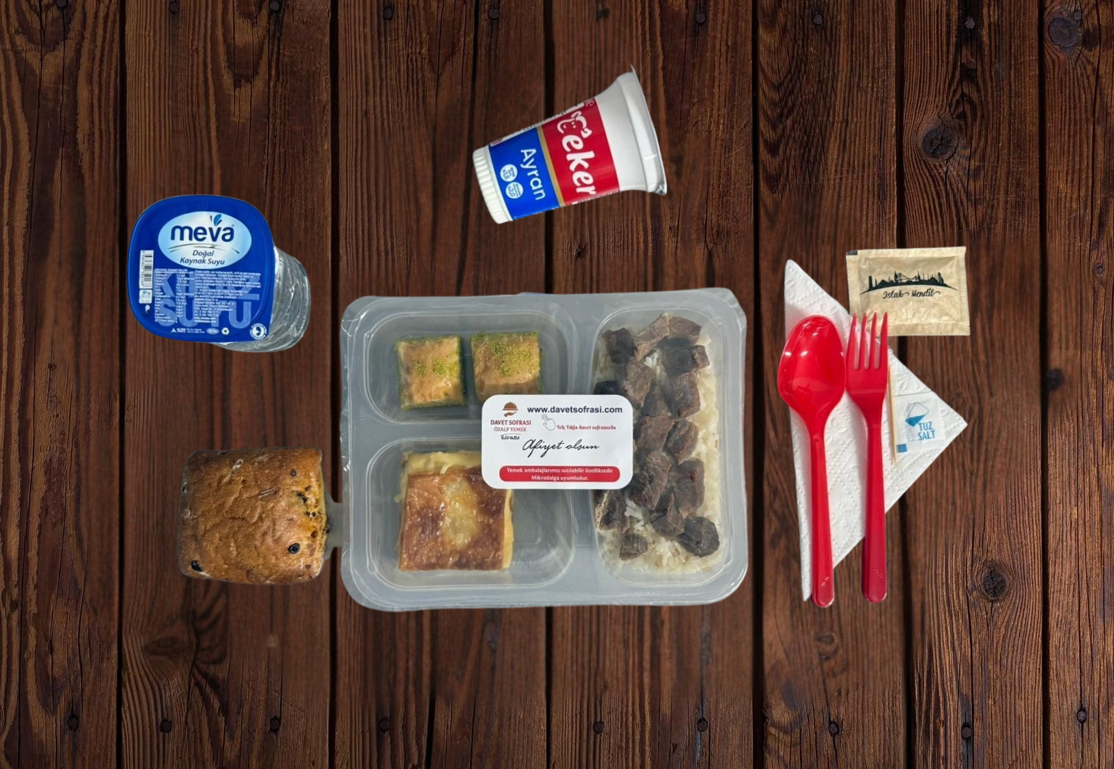 - Servis (Çatal, Kaşık, Bıçak, Islak Mendil, Peçete, Tuz, Kürdan)