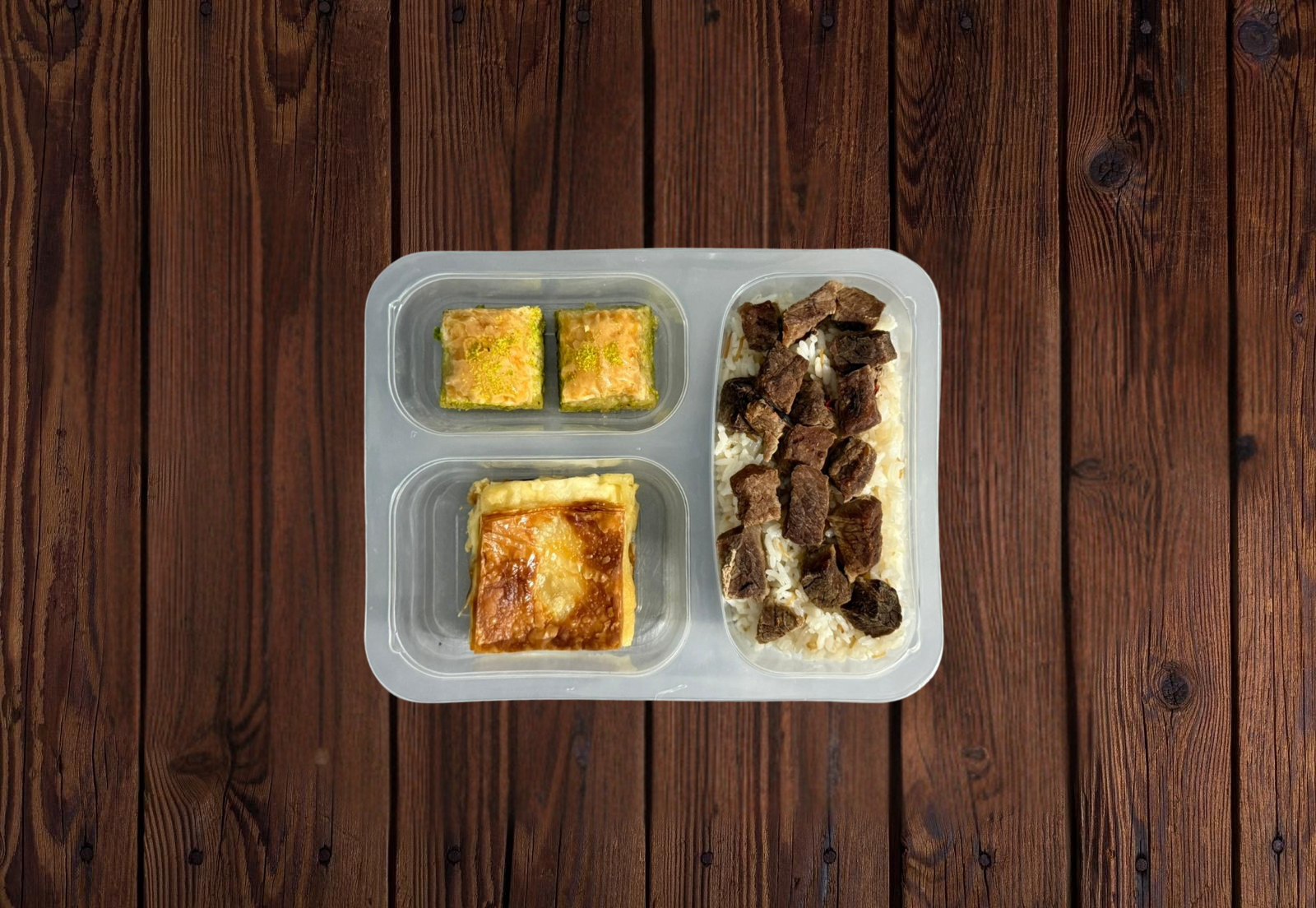 Davet Sofrası, baklavayı günlük ve taze olarak üretir. Paket yemek hizmeti kapsamında tatlılar özel kaplarda hijyenik şekilde teslim edilir. Böylece hem tazelik hem de görsellik korunur.