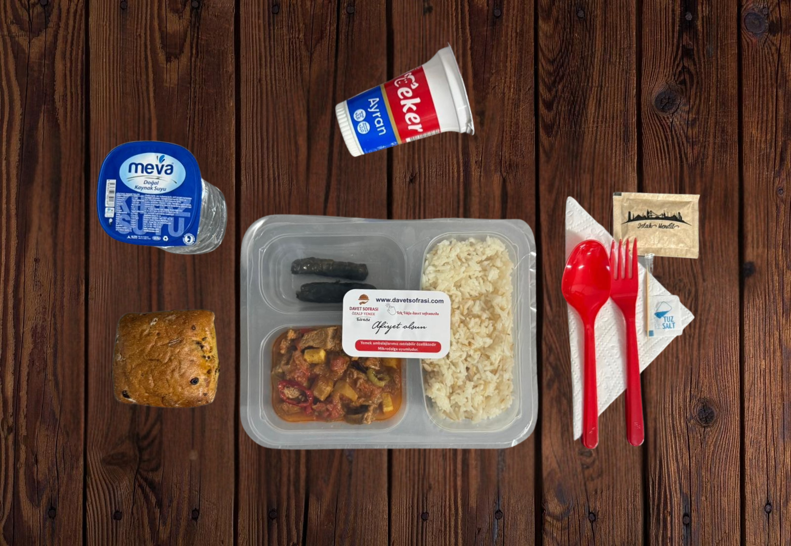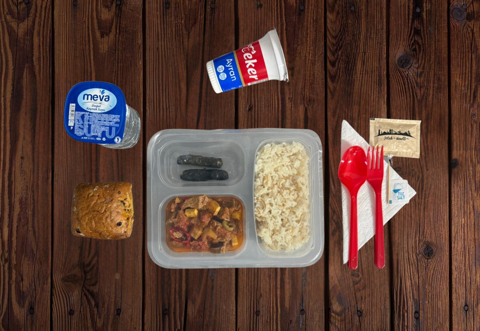 - Servis (Çatal, Kaşık, Bıçak, Islak Mendil, Peçete, Tuz, Kürdan)