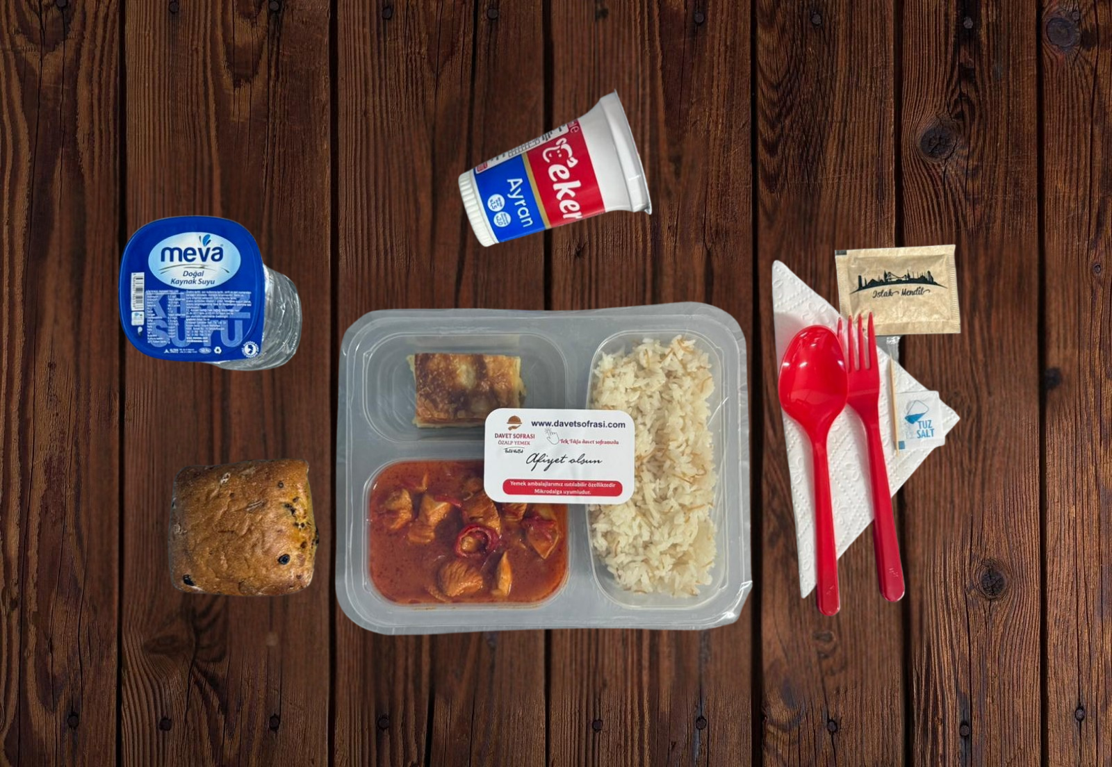 - Servis (Çatal, Kaşık, Bıçak, Islak Mendil, Peçete, Tuz, Kürdan)